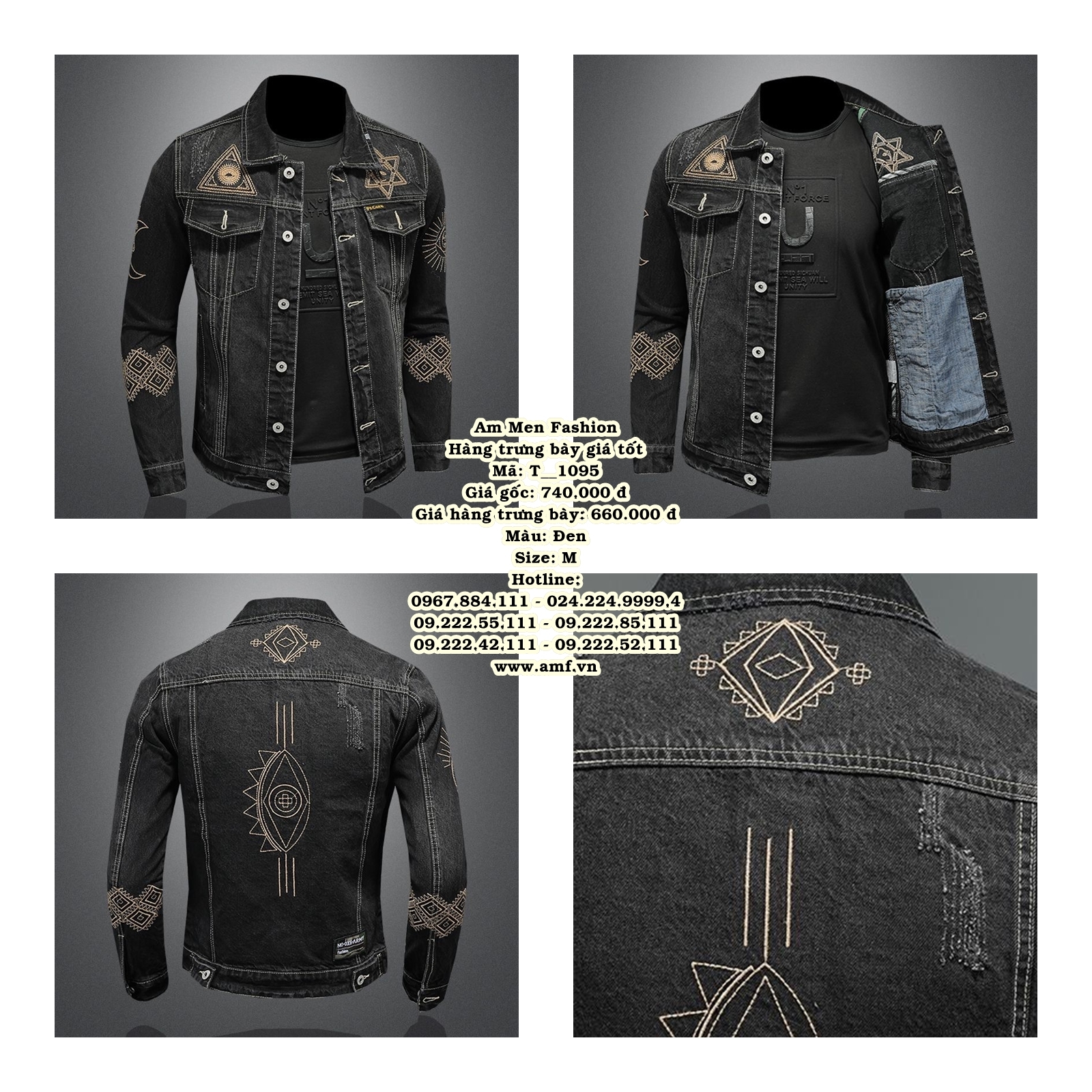 T_1095 nổi bật với hệ họa tiết thêu hình học độc đáo, mang phong cách thời trang đường phố mạnh mẽ nhưng vẫn giữ được sự tinh tế.