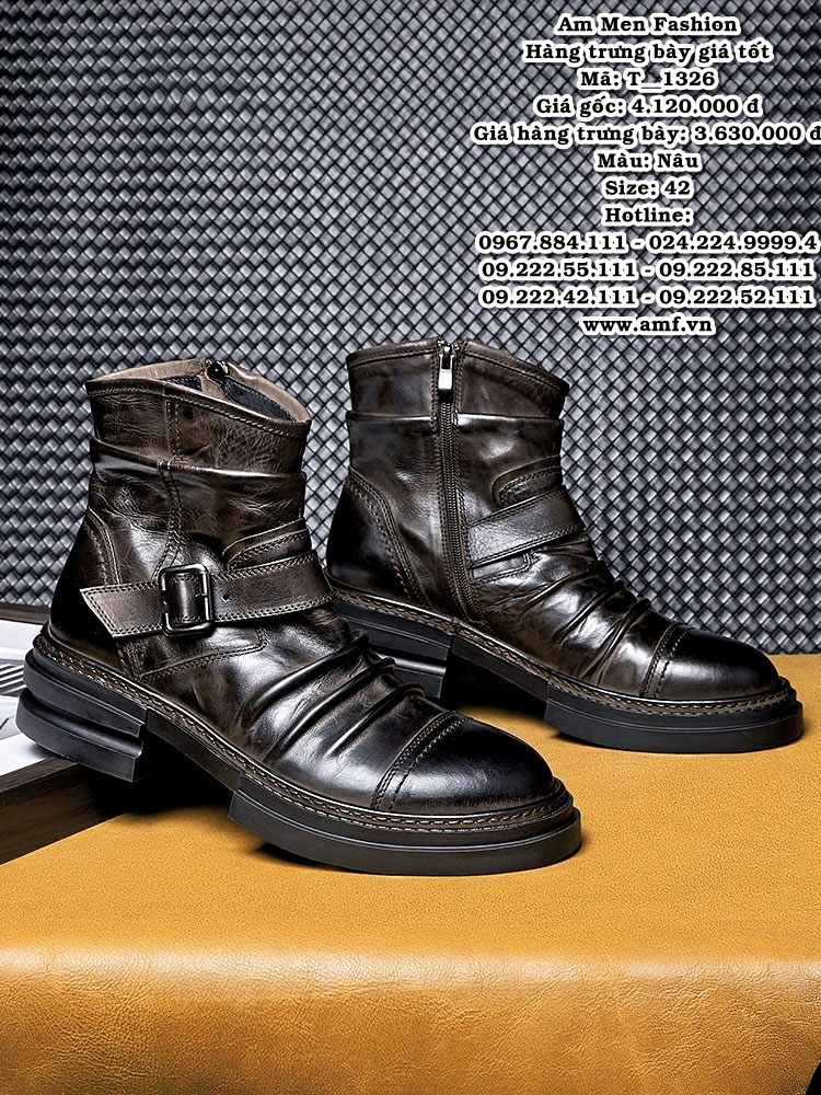 T__1326 gây ấn tượng với phong cách retro bụi bặm, bề mặt da xử lý loang cổ điển – tạo chiều sâu thẩm mỹ đậm chất đàn ông trưởng thành. Quai khóa bản lớn tăng điểm nhấn, đế dày chắc chắn giúp bước chân cứng cáp đầy khí chất.