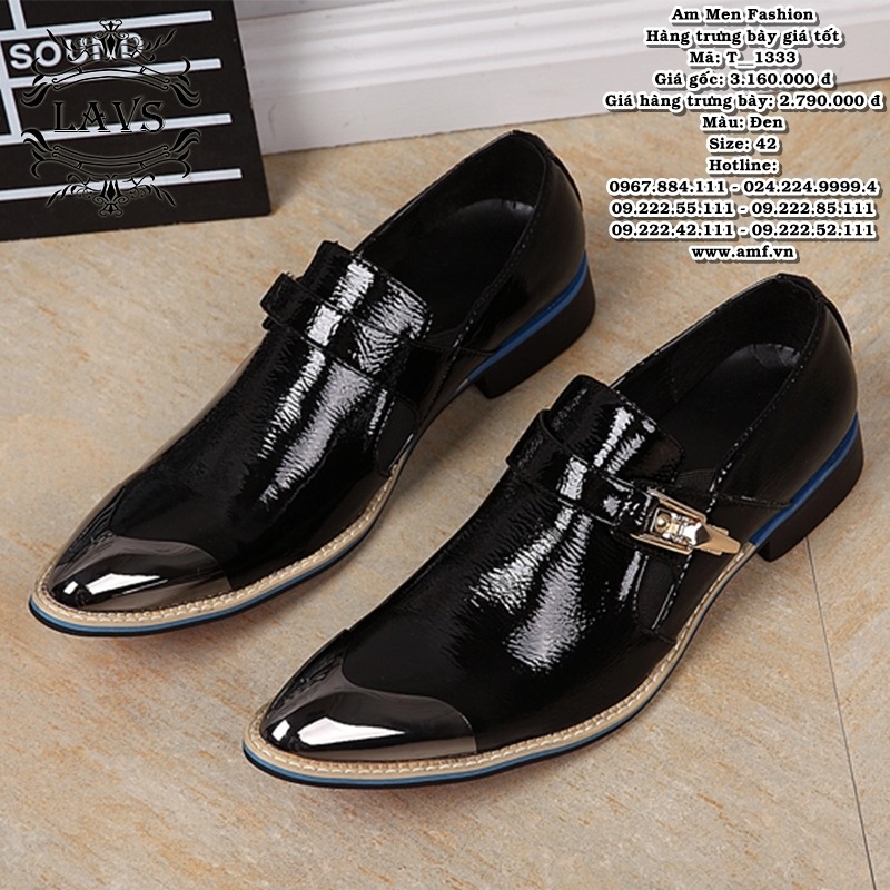 T_1333 mang phong thái của một quý ông hiện đại nhờ thiết kế khóa kim loại tinh gọn và bề mặt da bóng sang trọng. Form mũi nhọn thanh lịch giúp đôi giày tạo hiệu ứng thon chân và nổi bật trong mọi trang phục công sở lẫn sự kiện.