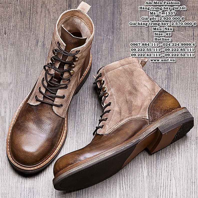 T_1337 nổi bật với phong cách hoài cổ – mạnh mẽ nhờ sự kết hợp giữa da thật và da lộn hai tone màu. Form boot cao khỏe khoắn giúp tôn dáng và mang lại sự cá tính tuyệt đối cho người đi.