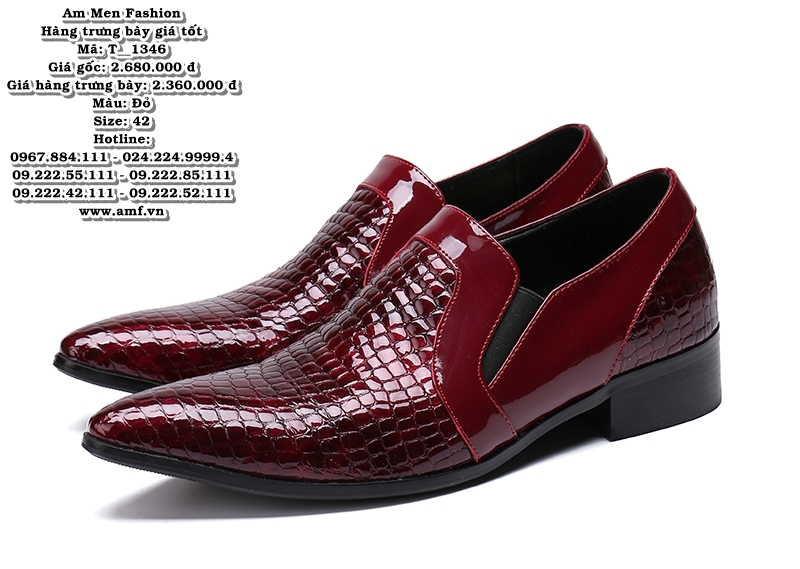🕴 T_1346 – Giày Lười Da Bóng Đỏ Hoa Văn Rắn Sang Trọng