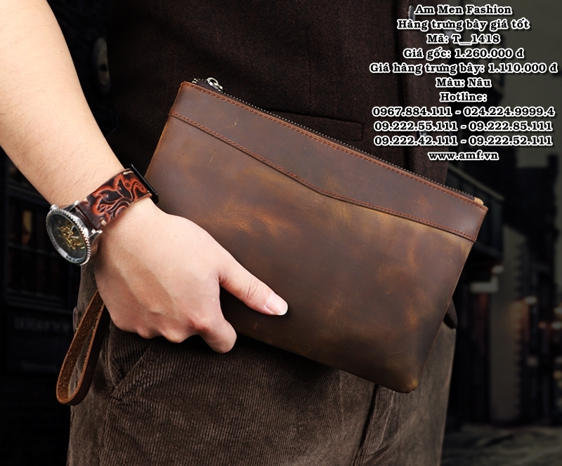 🕴 Túi Cầm Tay Da Vintage Cao Cấp Trưng Bày T_1418